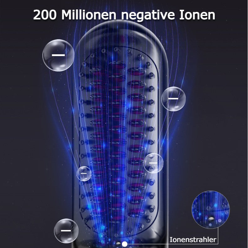 Unsere Heatbrush hat 200 Millionen negative Ionen, die er freisetzt. Der integrierte Negativ-Ionen-Strahler wirkt direkt auf dein Haar und hilft, Frizz zu reduzieren und das Haar zu glätten, während es gleichzeitig für mehr Glanz sorgt.